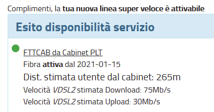 Ciao a tutti, pochi mesi fa hanno fatto dei lavori di fronte a casa mia in cui dovrebbero aver messo la fibra, ho controllato sul sito di Planetel inserendo il mio indirizzo e ciò che esce è questo: