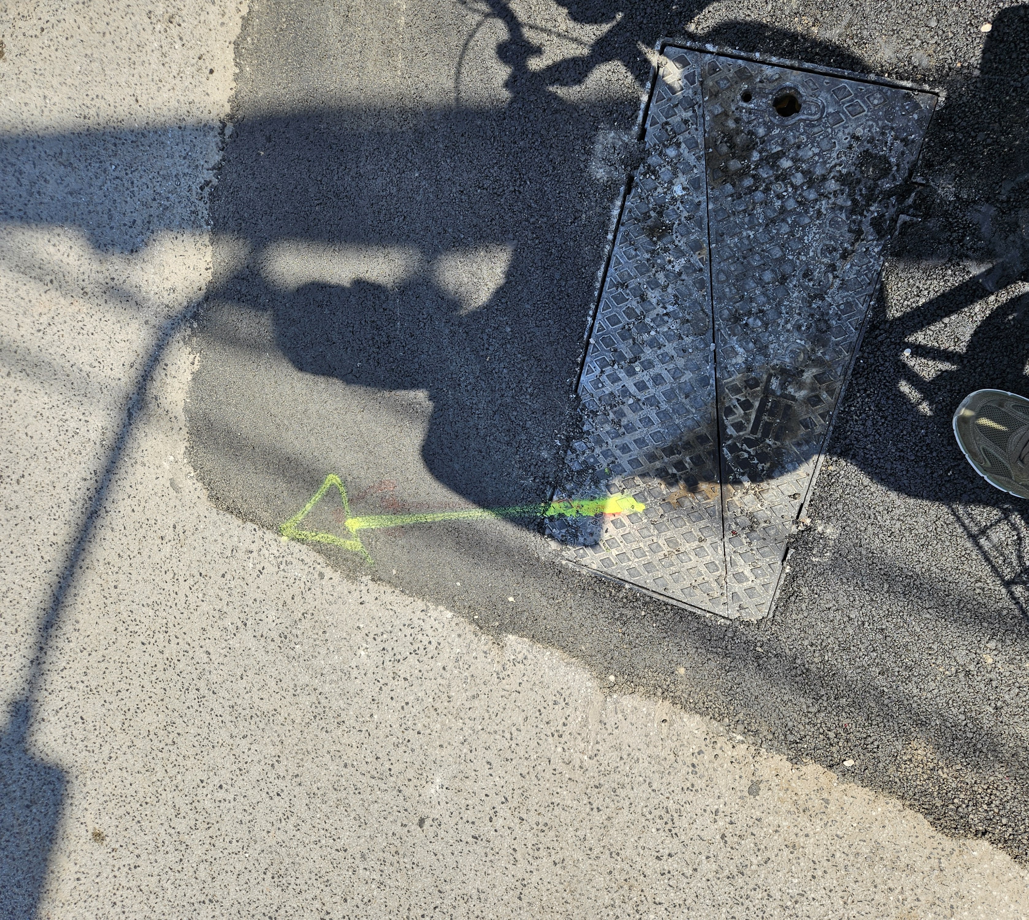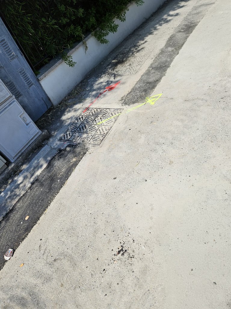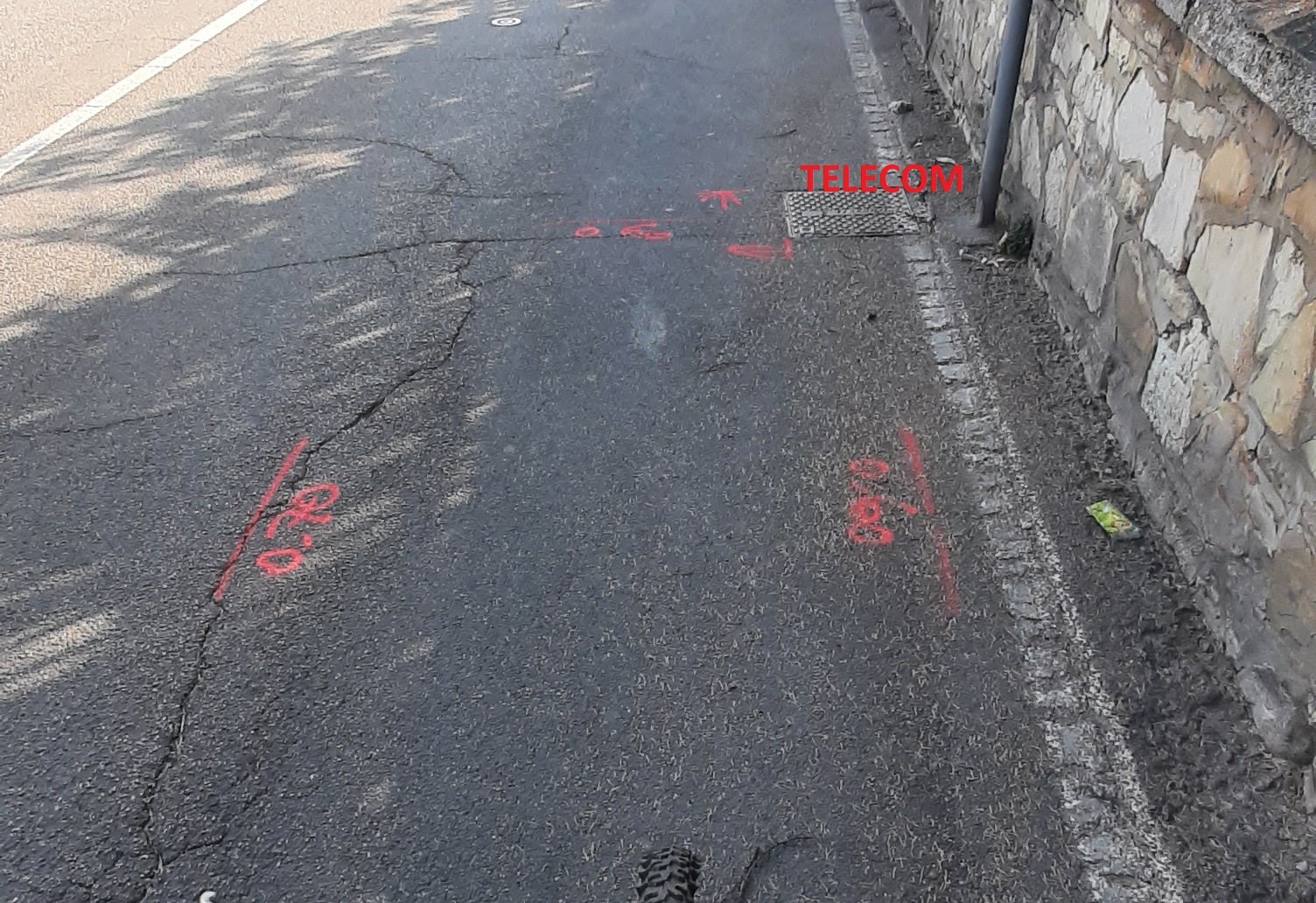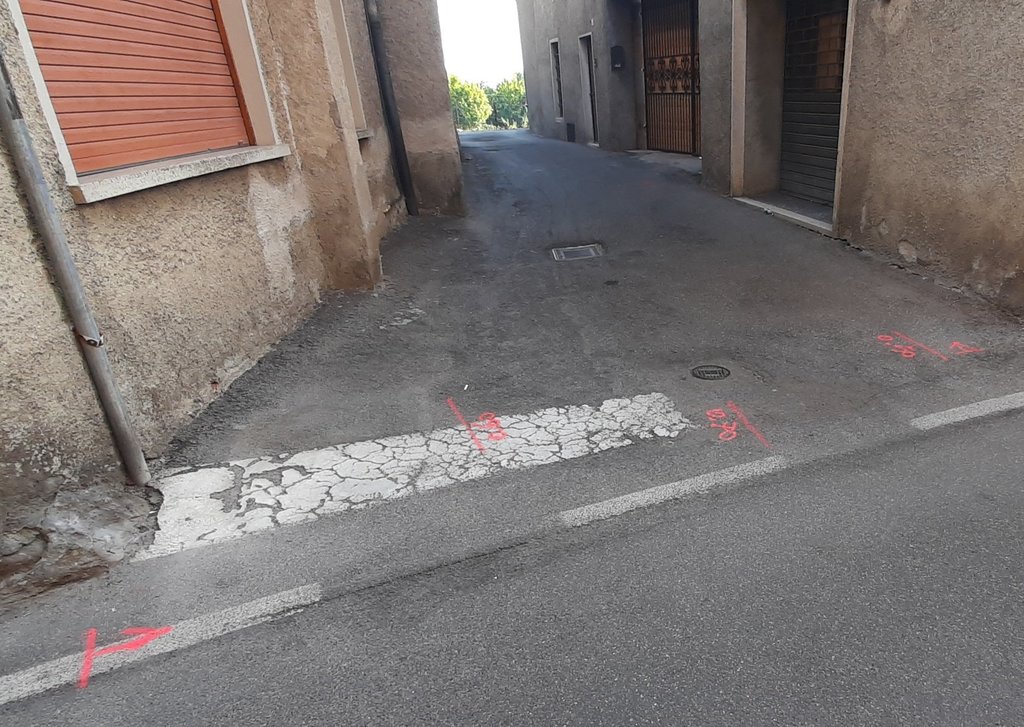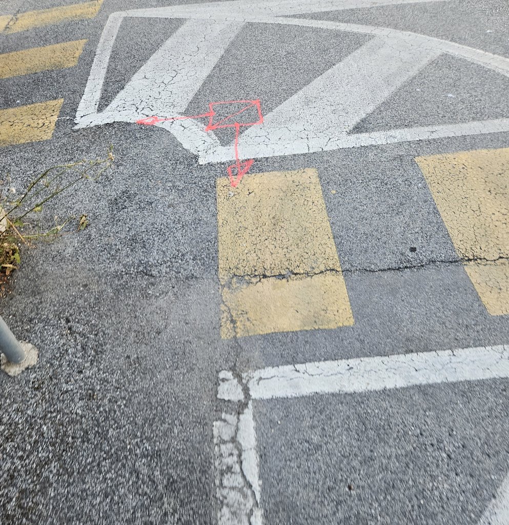 Colgo l'occasione anche per chiedere cosa indichino queste scritte sull'asfalto, fatte sempre dai tecnici. Non credo degli scavi perché lo scavatore è sempre rimasto parcheggiato dove hanno svolto i lavori, e oggi lo hanno portato via insieme ai cartelli che segnalavano i cantieri.