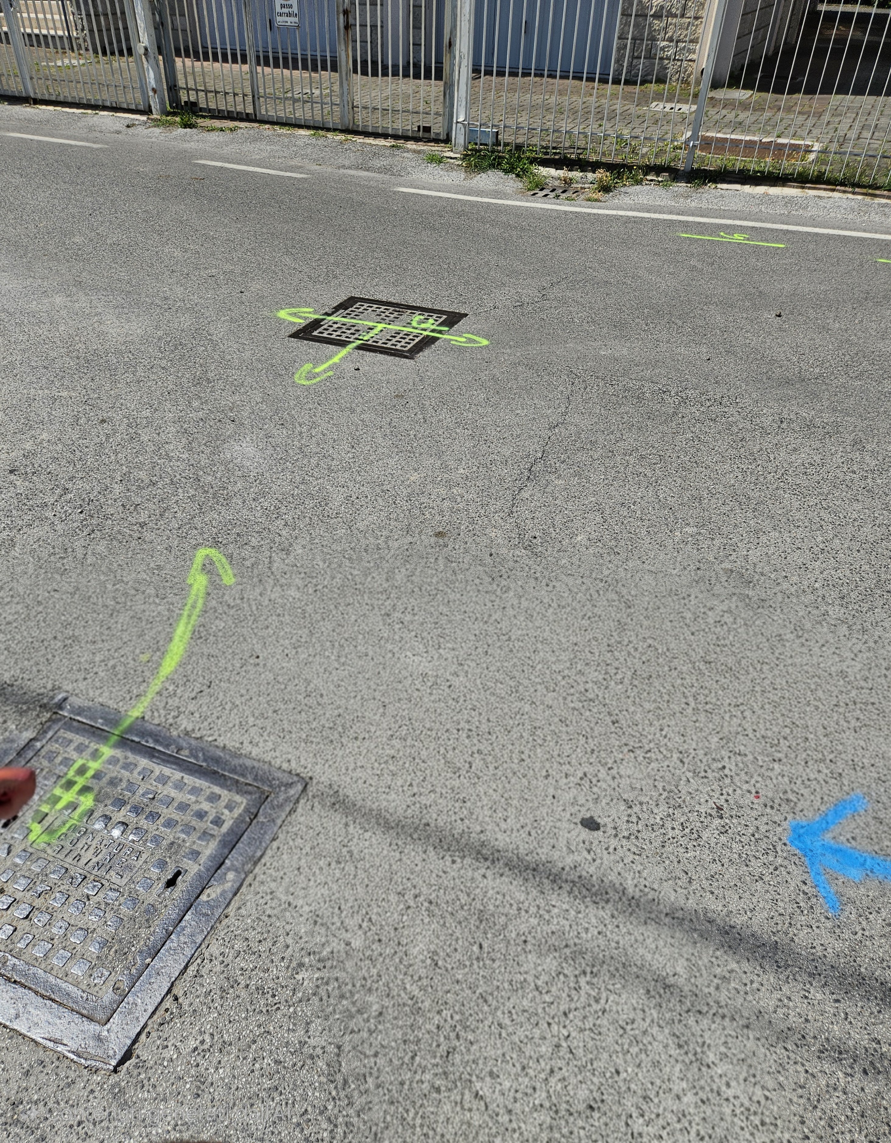 Queste frecce sono disegnate anche su un paio di pozzetti.