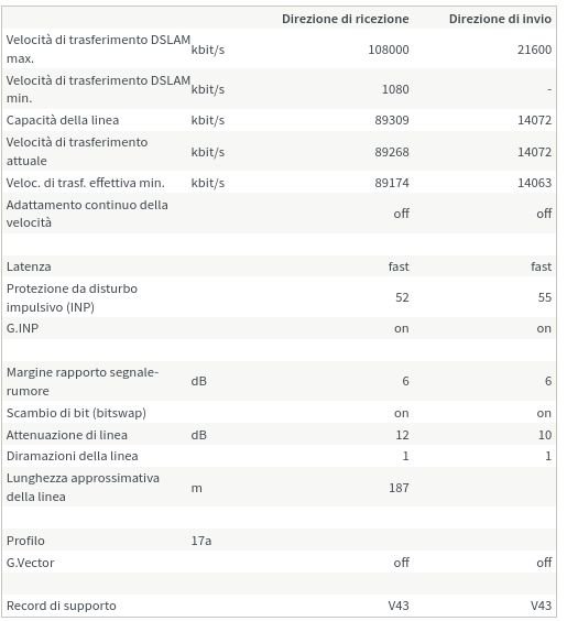 possiedo da più di un anno una FTTC TIM 100/20, e sono andato alla grande per circa un anno con 93Mib/s DS e 19.8Mib/s US.