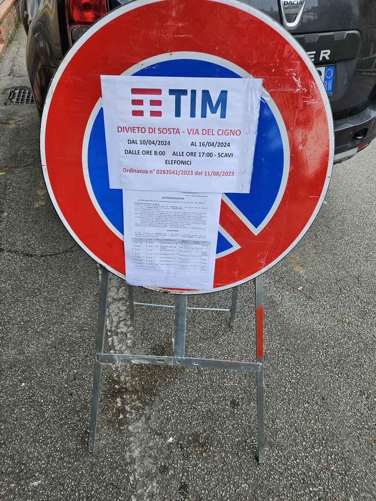 Allego anche la foto del cartello dei divieti di sosta, nel quale sono riportate tutte le vie presso le quali saranno eseguiti gli scavi.