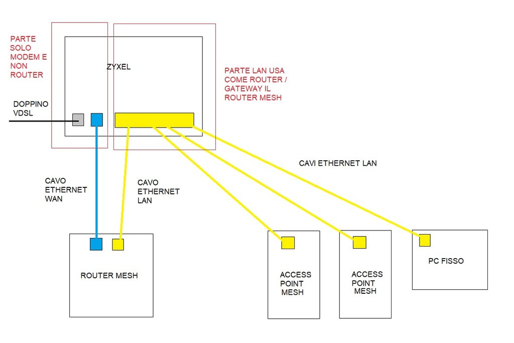 handymenny Non so se ho capito la tua risposta ma non vorrei usare lo zyxel come secondo router a cascata del mio router mesh, ma usarlo semplicemente come client e switch all'interno della rete creata dal router mesh.