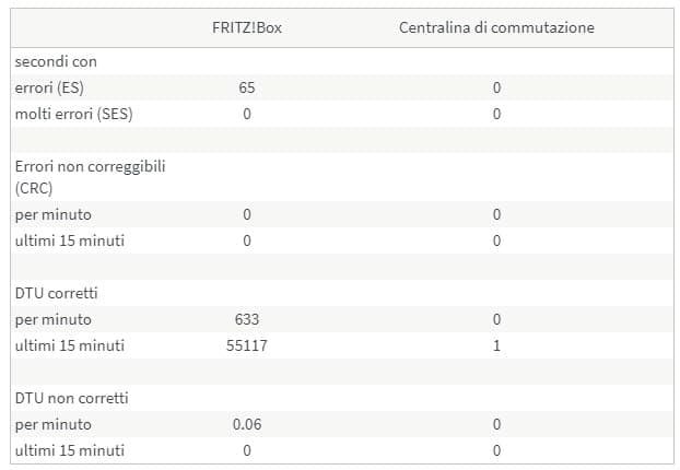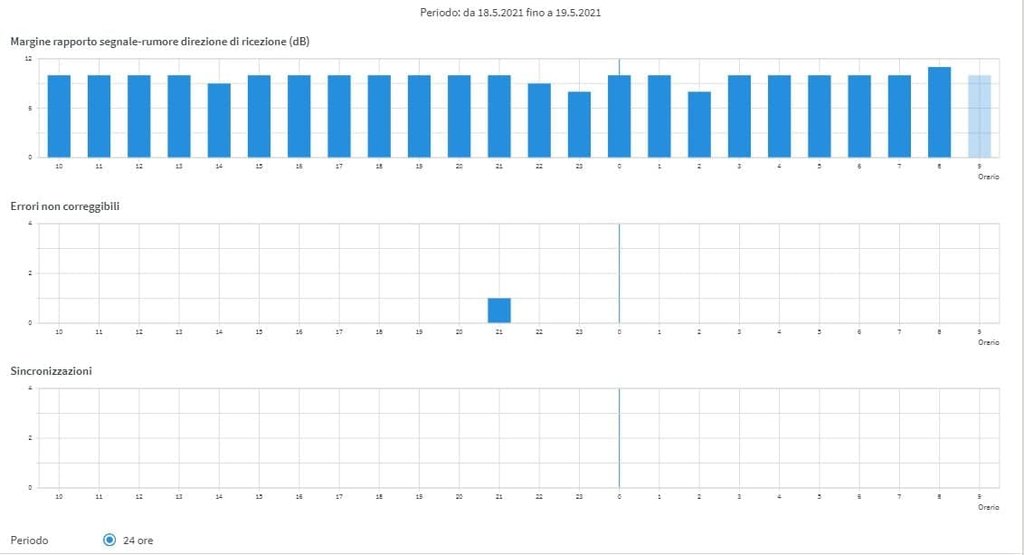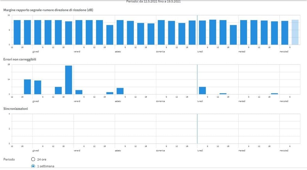 Con la configurazione sopra esposta, gli errori sono stati effettivamente molto bassi, eccetto qualche sporadico aumento (poche unità) dei CRC.