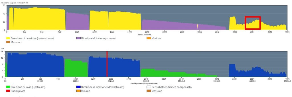 Prima che si verificasse l'aggiornamento automatico avevo notato un "buco" nello spettro, vi riporto qui sotto un'immagine indicativa (non l'avevo salvata) per farvi vedere a grandi linee la parte interessata.