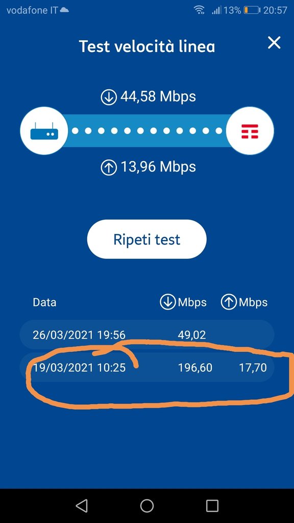 AlexGiuliano Veehxia @Marco-TIM si ho collegato e scollegato un paio di volte.. dopo un po che non riuscivo a ricollegare il fritz ho ricollegato tutto al tim hub entro nel router e già li vedo down 50 up 15 da 200 a 20 ho fatto un reset ai dati di fabbrica ma nulla... per la velocità del fritz lo so infatti ho fatto il reso