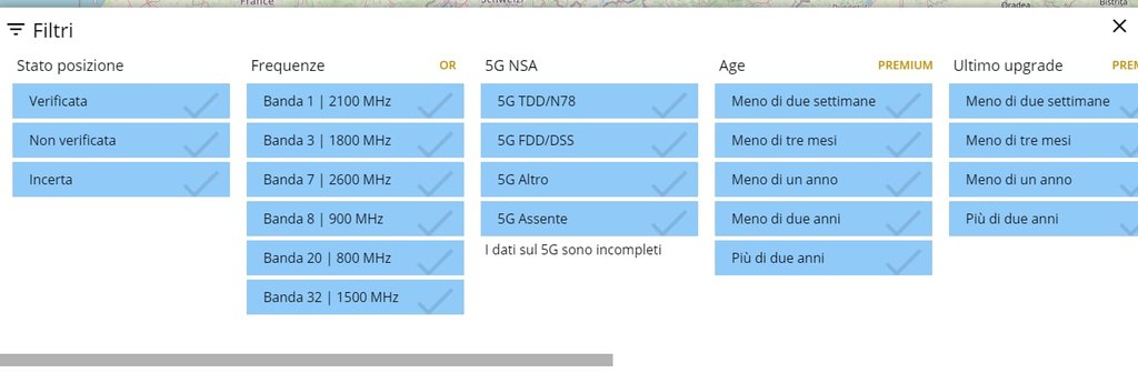 Una volta fatto il login, apri la sezione filtri e vedi che c'è una colonna "5G NSA" puoi usarla per filtrare le BTS 5G: