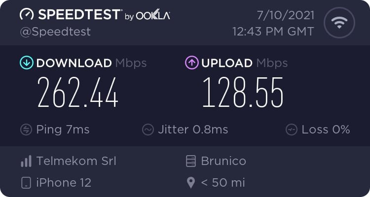 Molto probabilmente erano contratti enterprise, ma tutti e due avevano un upload ben più alto dei profili che i noti operatori bilingue offrono (a prezzi tutt’altro che economici). Allego speed test.