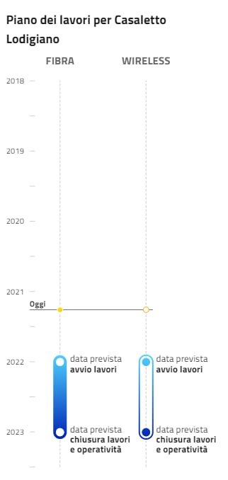 Sto seguendo cosi per curiosità mia le porgrammazioni dei lavori per le aree bianche della mia regione (lombardia) e noto delle incongruenze nelle mappe dei 2 portali, ci sono alcuni comuni che sul portale BUL risultano con lavori gia in esecuzione mentre su OPEN FIBER sono ancora in progettazione... su quale dei 2 è meglio fare affidamento?? Anche le date di inizio/ fine lavori a volte nn mi sembrano troppo corrette in alcuni casi mi sono accorto che hanno anticipato l'apertura del cantiere e in altri invece hanno ritardato