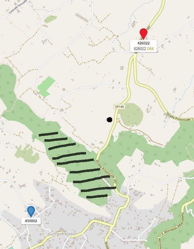 Il punto rosso è una BTS di WindTre è la più vicina a casa mia (1.3km ed è a vista) con due nodi: 426022 il principale, è un 3CA (B1, B3, B20) ma essendo quello con più connessioni, è il più scarso, forse i suoi settori non puntano verso me. Il secondo 826022 è un 2CA (B3, B7) ed è più performante (forse ha i settori più puntati verso me).