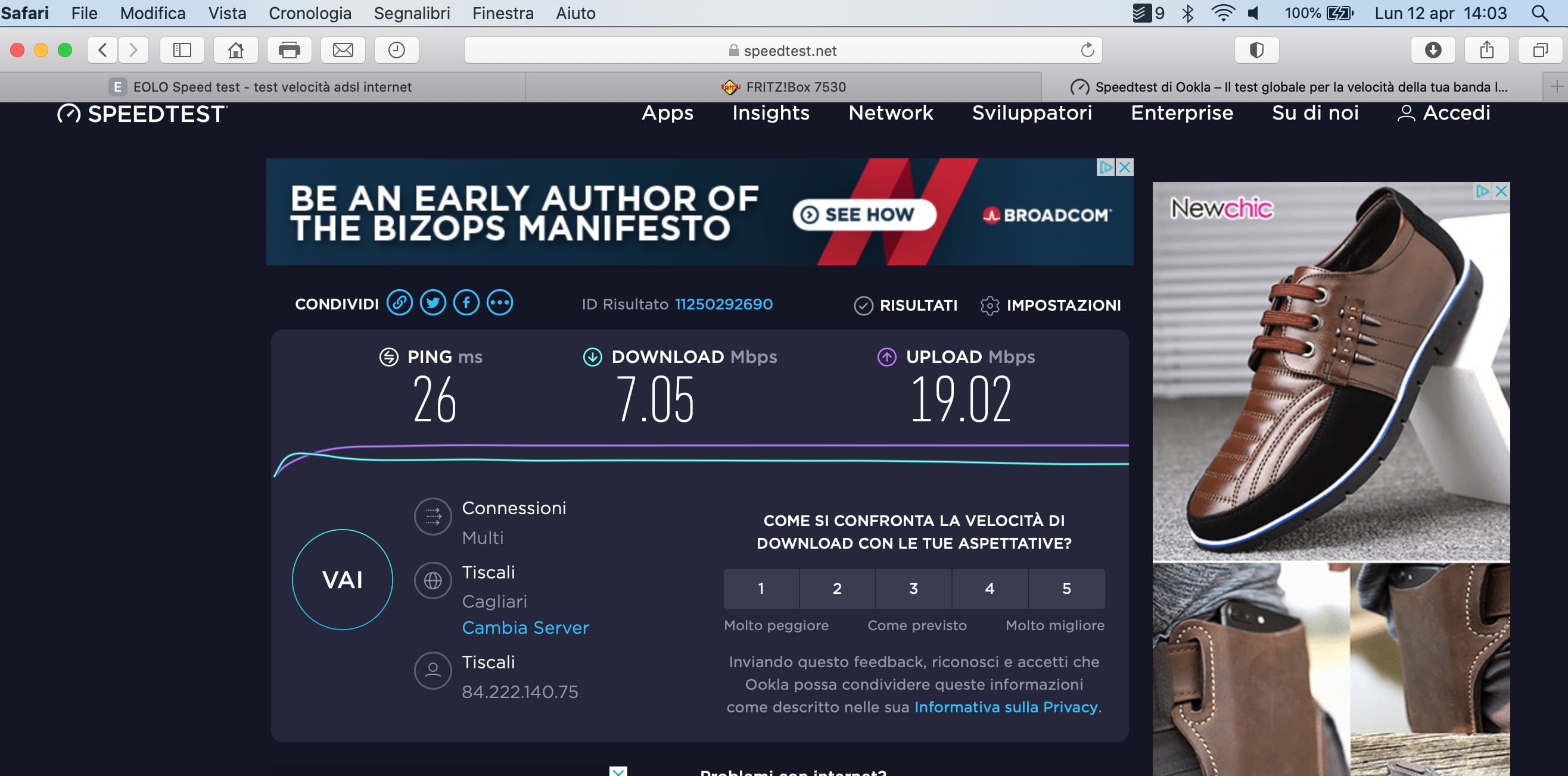 Ovviamente ne ho parlato con Tiscali, la quale mi ha consigliato di usare come server Cagliari....ma la cosa non è cambiata.