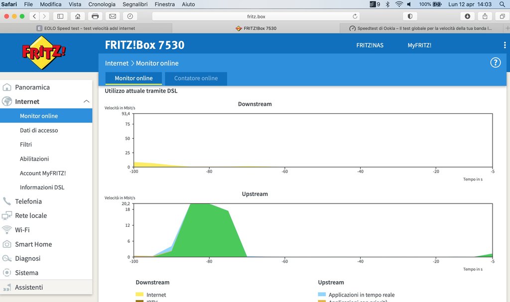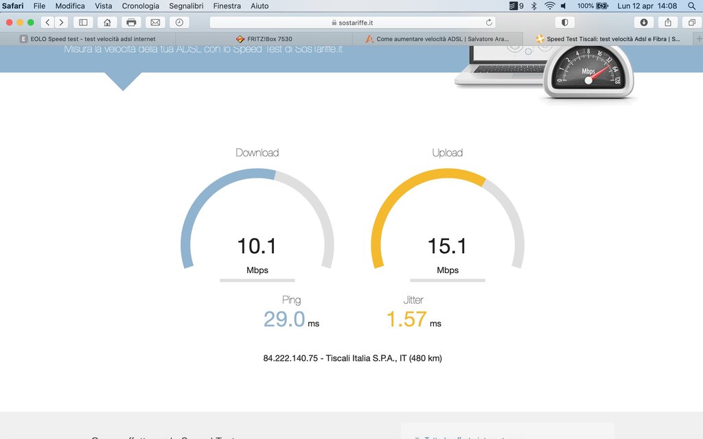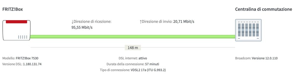 Devo dire che, anche grazie alla vicinanza che ho con la cabina telefonica e, a sua volta con la centrale, ho 96mb di down e 20 di up - questo al modem - il fritzbox 7530