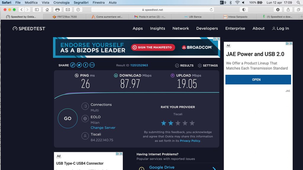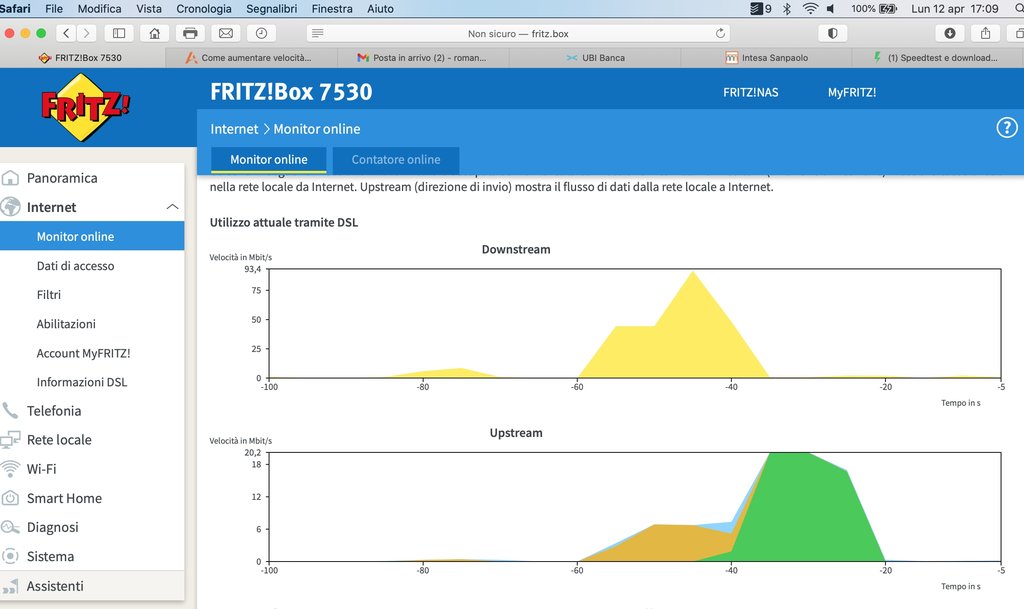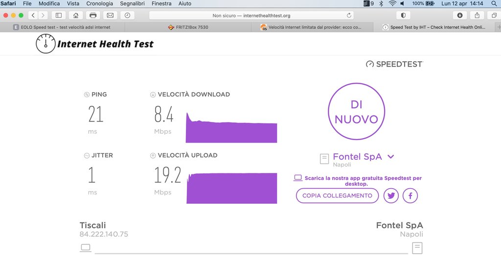 Ma anche l'effettiva connessione e navigazione è su questi livelli. Me ne accorgo dal caricamento di un video o altri down di file pesanti. Ho notato anche che dal Fritzbox, effettivamente, anche negli speedtest, non viene sfruttata, se non in quella piccola percentuale, la banda in Down, mentre in up non ci sono problemi. Ovviamente tali test che ho allegato sono stati fatti anche in ethernet, ma la cosa non è cambiata, se non di qualche mega.