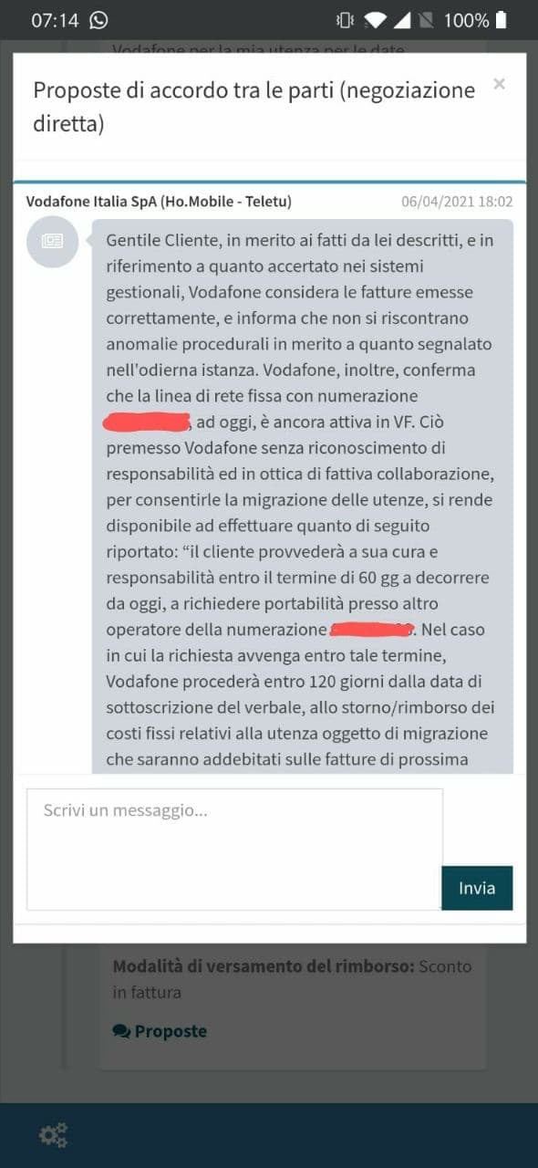 Non è mai riuscito ad avere nessun contatto da parte di Vodafone per gestire la cosa.