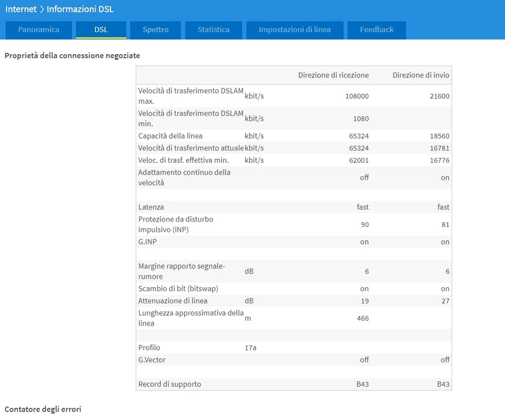 Questo problema l'ho riscontrato durante i primi giorni dall'attivazione e poi si è sistemato da solo e per circa 15 giorni ho avuto il modem sincronizzato a 65/21.6 senza mai un calo.