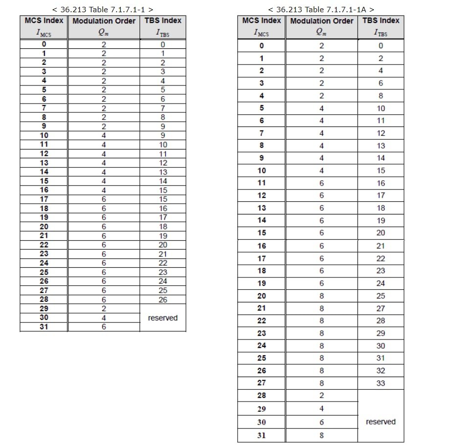 Se vedi nella tabella a destra ci sono delle righe con modulazione 256qam ma TBS index uguale o più basso dei valori a sinistra.