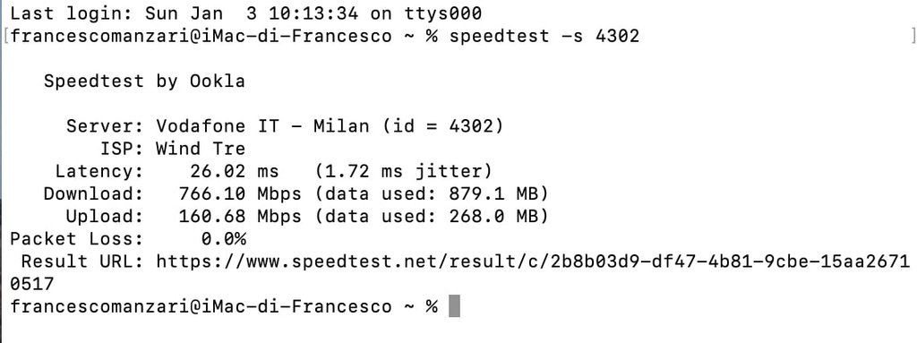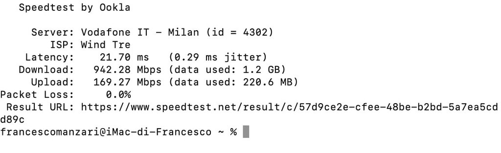 Questo è il mio risultato connettendo l'iMac all'ORBI wifi 6 posti in linea d'aria: