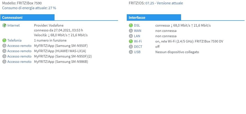 ho un contratto Vodafone FTTC VULA 100 Mb/s in download e 20 Mb/s in upload e sono collegato con Fritzbox 7590 aggiornato all'ultima versione stabile disponibile.