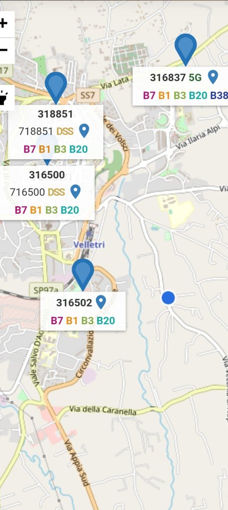 Cambiando discorso vorrei passare a una linea 4g lte, ho preso un router Huawei B818-263 modello c1217(dopo aver letto i problemi con la b1 e windtre) nella foto c'è la mia posizione non molto distante dalla BTS. Poiche dentro casa il telefono non prende vorrei mettere un' antenna sul tetto poiche se esco fuori casa con il telefono lo speedtest è di circa 60mb in download.