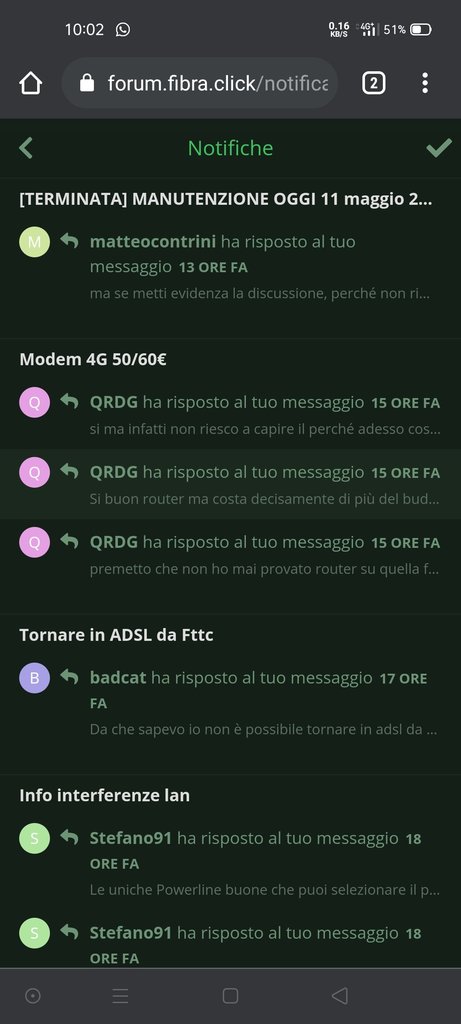 Camel90 matteocontrini per esempio la tua risposta al mio messaggio, non mi è arrivata la notifica... L ultima notifica era proprio la tua. Ma nel mentre ne ho ricevute molte altre