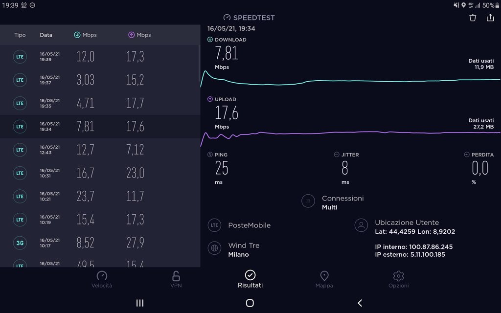 Lo speed test dove risulta 23mbit è stata fatta con Sim Fastweb sotto rete TIM.