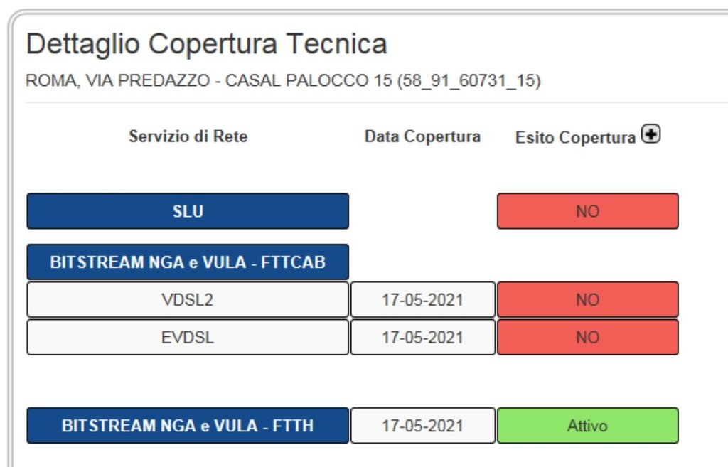 Il distributore 00603H_69/9D1- formalmente censito in V. Predazzo 15 - in effetti è associato al ROE ROMDITR2EHN (quello indicato con altri riferimenti dal tecnico), anch'esso formalmente censito al medesimo indirizzo...che infatti risulta coperto/vendibile FTTH: