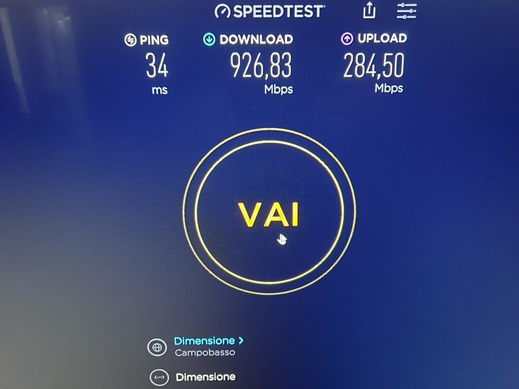 Inoltre raggiungo questi valori in download solo la notte, di giorno sta intorno a 700/800mbs. Cio' indica che probabilmente il PCN stesso e' collegato provvisoriamente solo ad 1gb.