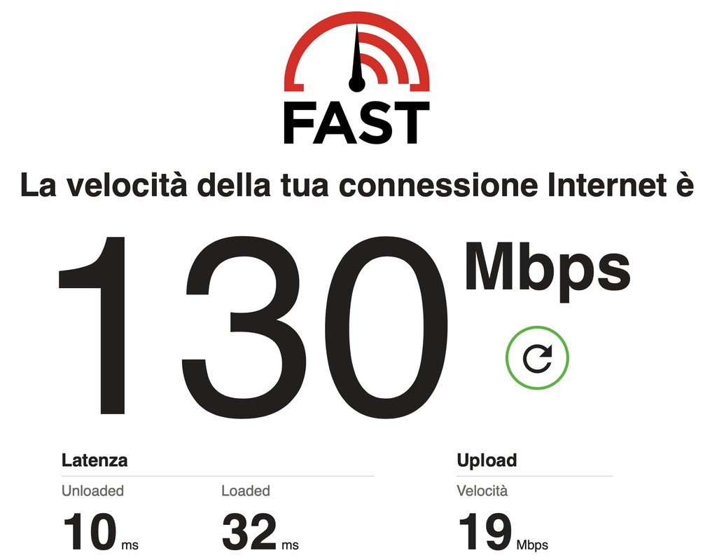 Qualche smanettamento per via degli IP della mia rete (NAS, stampanti, Xbox) poca roba... semplice semplice. Prima verifica della velocità con Fast.com...