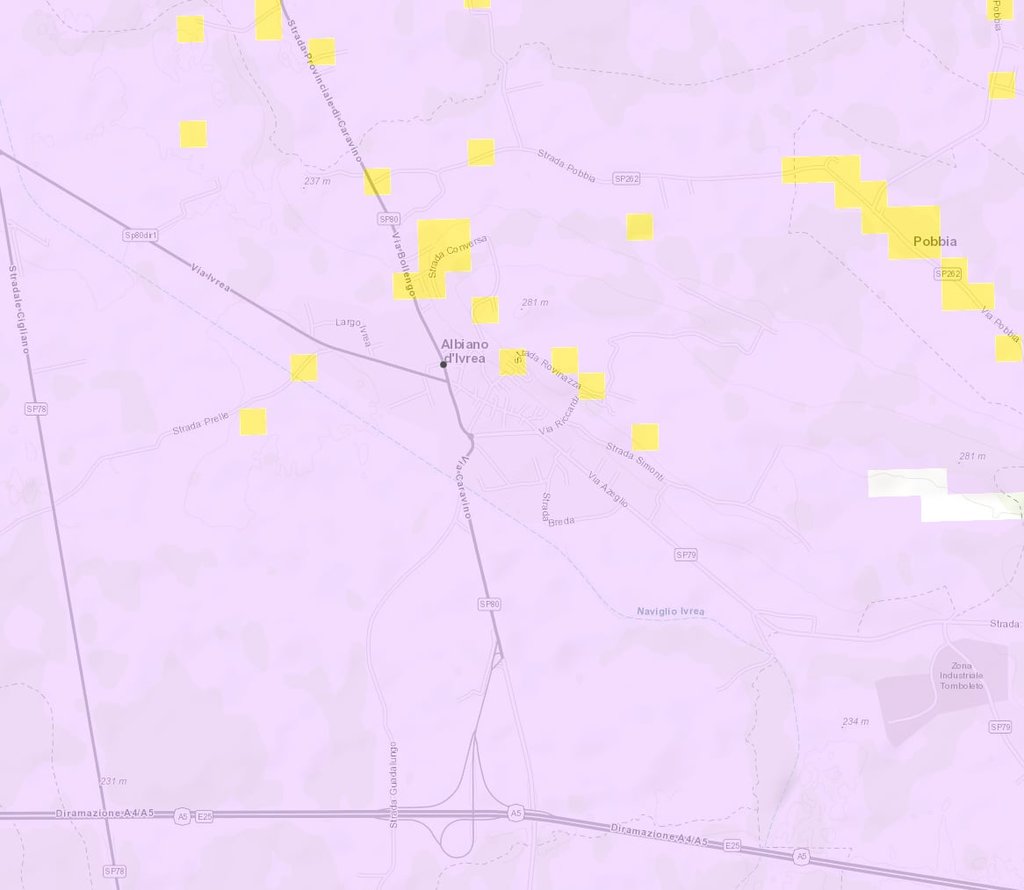se sei nelle zone riportate in giallo nella mappa sotto, forse potresti essere fortunato, avendo copertura con FWA 100 di qualche operatore