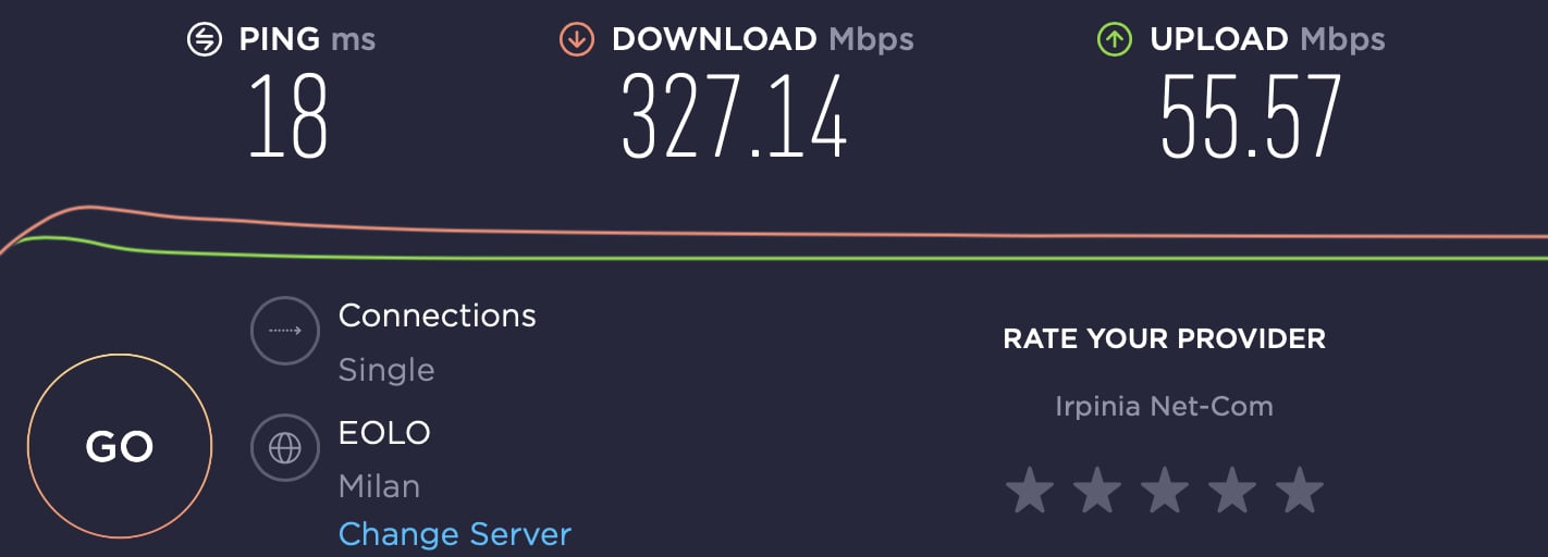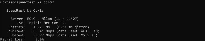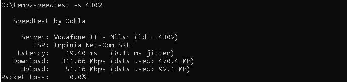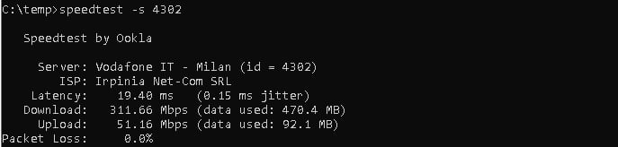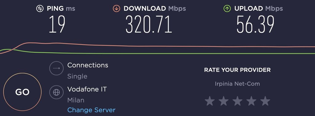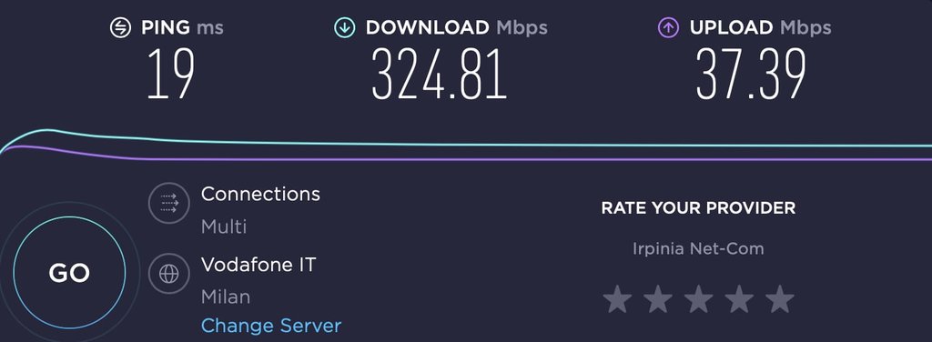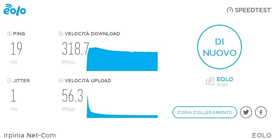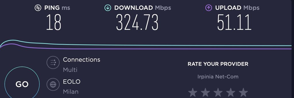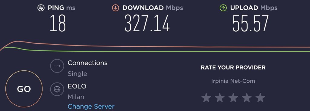 da cli e da chrome > speedtest scegliendo sia eolo milano che vodafone milano tutto corretto come velocità; anche su server dimensione speedtest tutto corretto ( 305-320/52-55 ovvio quello dei browser non sono da considerare come veritieri)