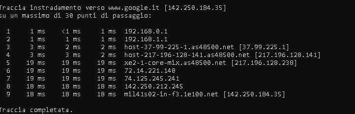 eseguendo (via cavo lan) da windows
