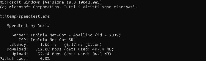 Profilo ftth 300/50;eseguendo speedtest da CLI mi viene la reale e corretta velocità della mia linea( 303/52)
