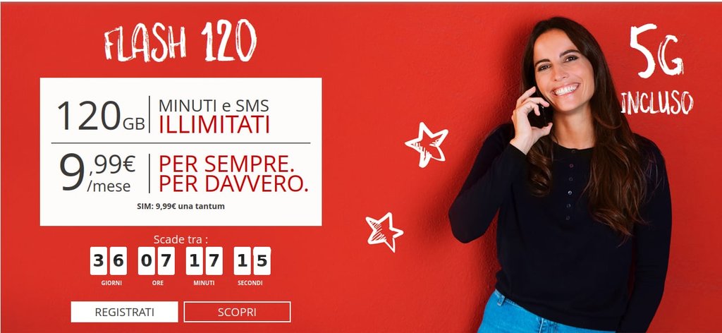 La prima è semplicemente la Giga 100 5G con 20GB in più. Sempre 5G, sempre il contatore che quando scadrà non toglie l'offerta ma rinominerà da Flash in Giga 120 (lol)