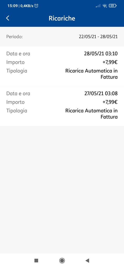 Dato che mi sembravano assai 25 euro di ricarica sono andato nell app e ho scoperto che la sim è stata ricaricata due volte. Dunque Ho chiamato al 119 e mi hanno detto che c'è una segnalazione generale relativa a questo problema.