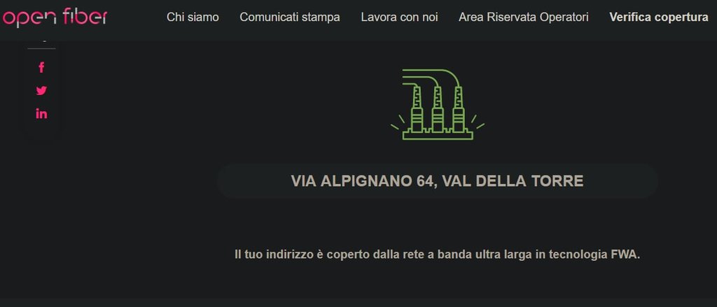 Mentre sul sito Open Fiber, alla voce copertura, risulto coperto solo in FWA.