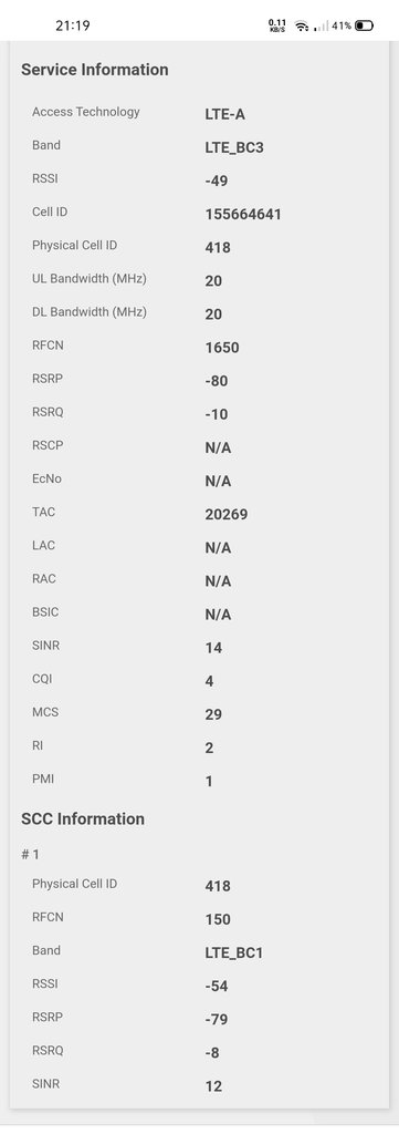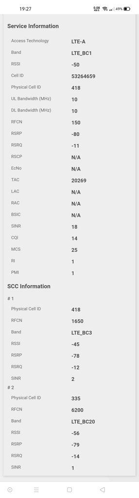 Questi sono i valori in B1 primaria mentre aggrega la 20 e la 3, e speed test