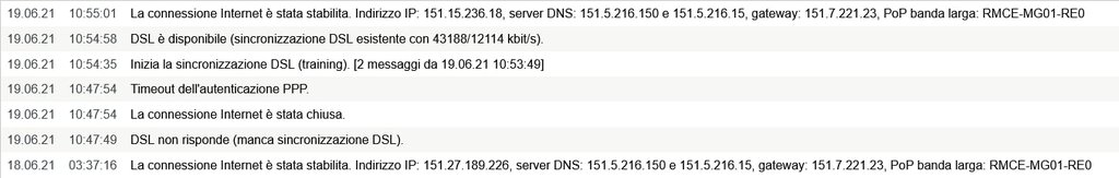 Il fritz è attaccato ad una UPS ed è rimasto acceso ,ma alle 10:47 è saltata anche la portante ( per intenderci il led power/DSL ha iniziato a lampeggiare mentre WLAN è rimasto fisso acceso ).