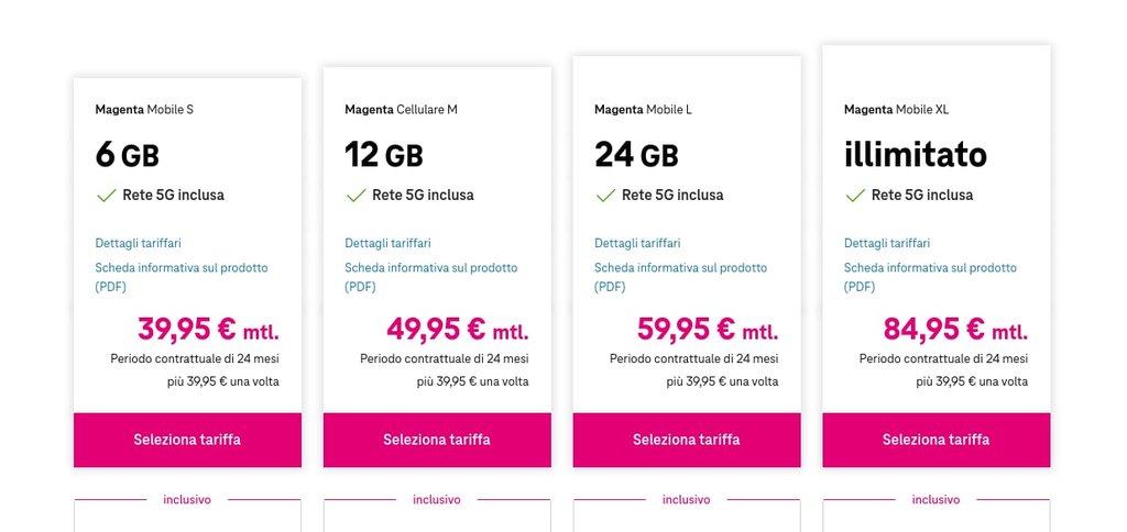 Offerta decisamente più decente rispetto a Magenta DE, con il plus che i giga illimitati hanno lo stesso prezzo con 5G... e se ci si vincola si ha uno sconto di 2,50€