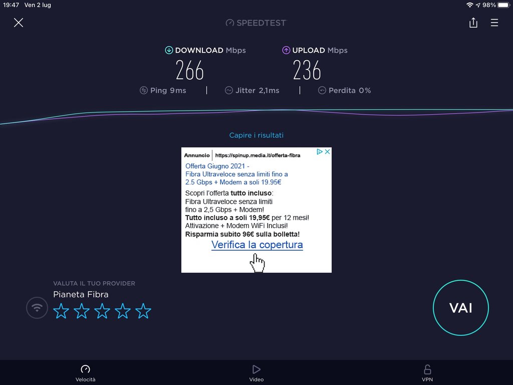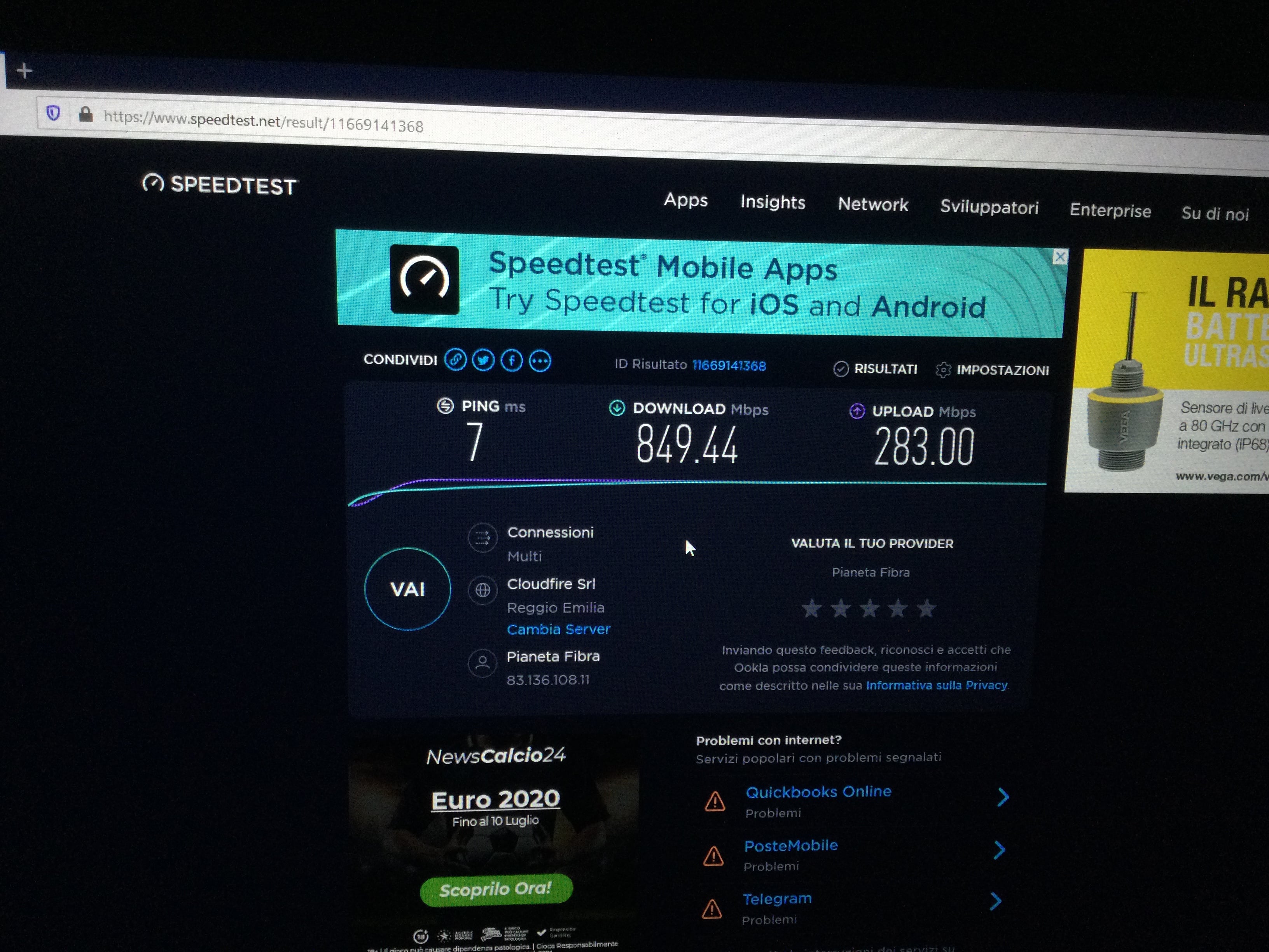 Giuseppe_01 navyseal71 Hai usato il server Vodafone? Ho l’IPad Air 2 e vado dai 400 fino ad aver raggiunto come massimo i 500.