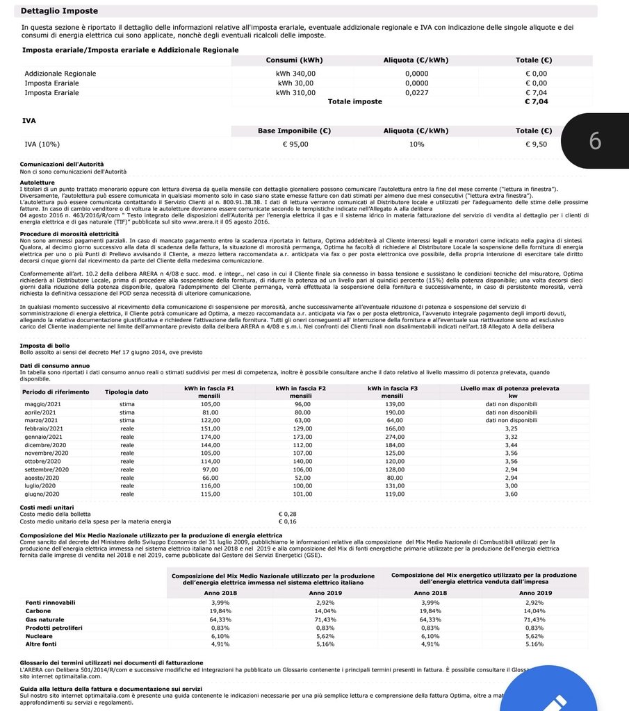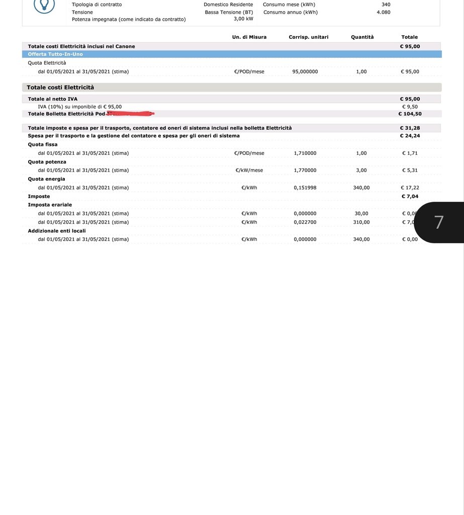 Attualmente stavo pensando se sarebbe conveniente per me cambiare forniture di luce. Attualmente pago un prezzo fisso di circa 104,95 € mensili (IVA inclusa) con Optima.