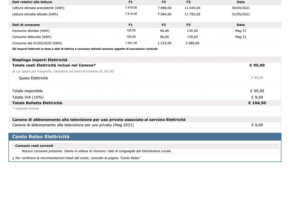 Il mio mensile è sui 340 kWh con uno annuo di 4080 kWh. In famiglia siamo in 3 e gli unici elettrodomestici sono: Frigorifero, lavatrice, scaldabagno, microonde e forno elettrico che raramente vengono usati. Per il resto per ora l’abitazione è piccola.
