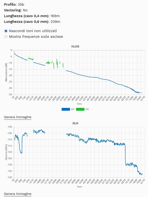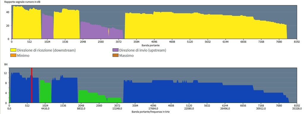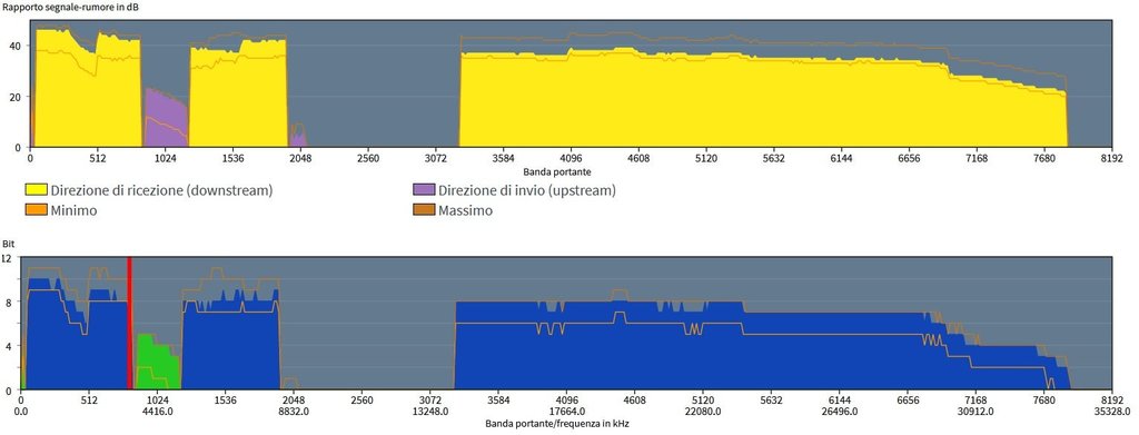 Come vedete, spesso, come adesso, manca completamente una bella fetta di frequenze sull'upload, con conseguente velocità. Metto anche hlog, come suggerito ad altri utenti.