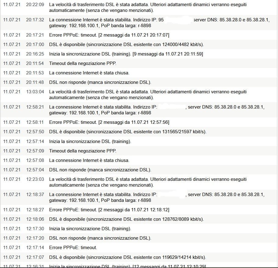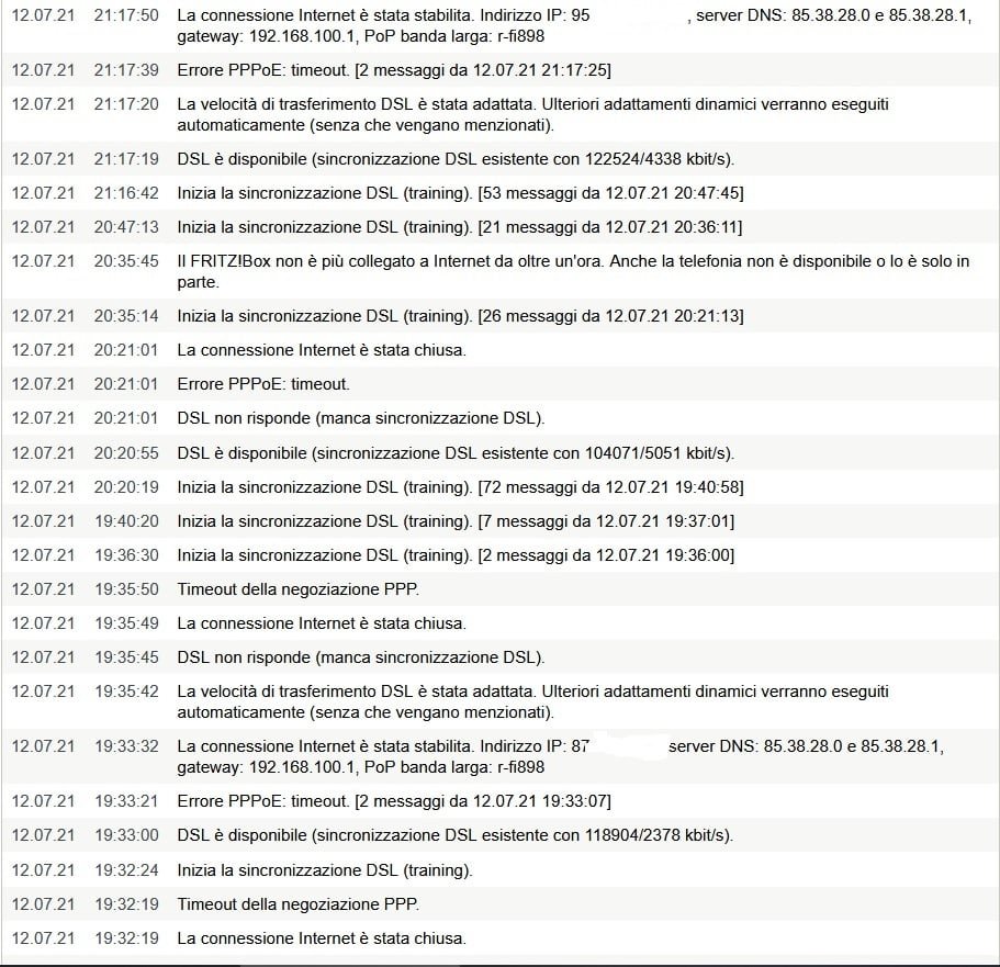 Mi sono registrato per chiedervi un consiglio sulla mia linea ballerina FTTC TIM, che da qualche mese, in maniera randomica, ha cadute di portante. A volte sta su per diverse ore, a volte cade per 3 o 4 volte in cinque minuti. Come modem ho il Frit!Box 7590, ultima Inhause 89433, ma la portante cadeva anche con un Tim Hub. Linea già sezionata dal tecnico quando fu installata, presa nuova messa dal tecnico che visivamente non ha problemi.