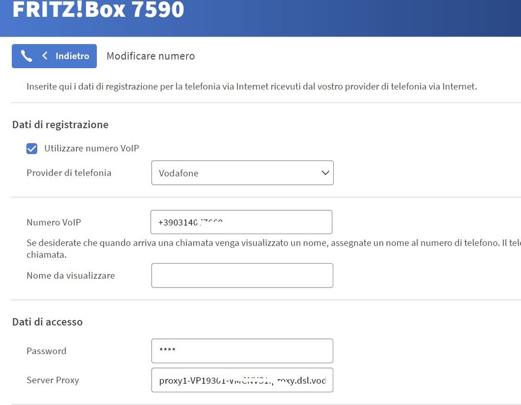 Fare attenzione che la voce server proxy, corrisponde a Parametro dell'endpoint SBC fornito da vodafone.