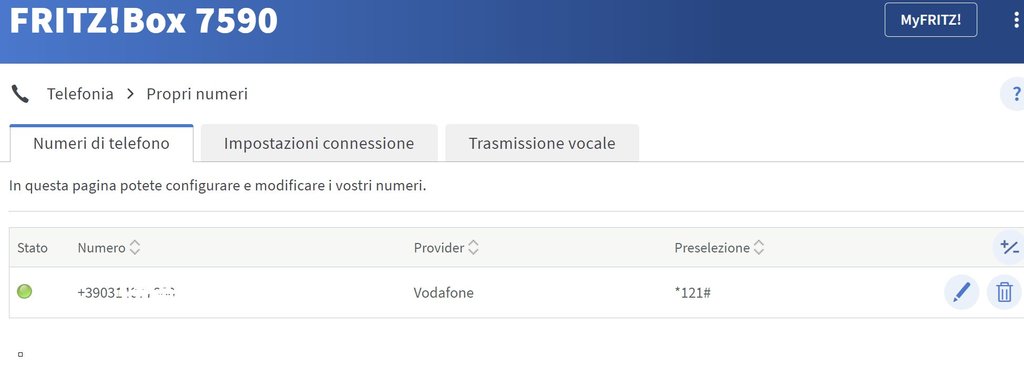 Sezione telefonia sul fritz e aggiungi nuovo numero: