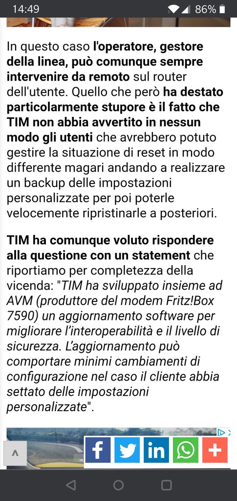 avevo scritto al supporto avm per chiedere l'implementazione del backup automatico (via ftp) della configurazione del fritz, accennando al fatto che tim ha piallato anche router non tim edition.