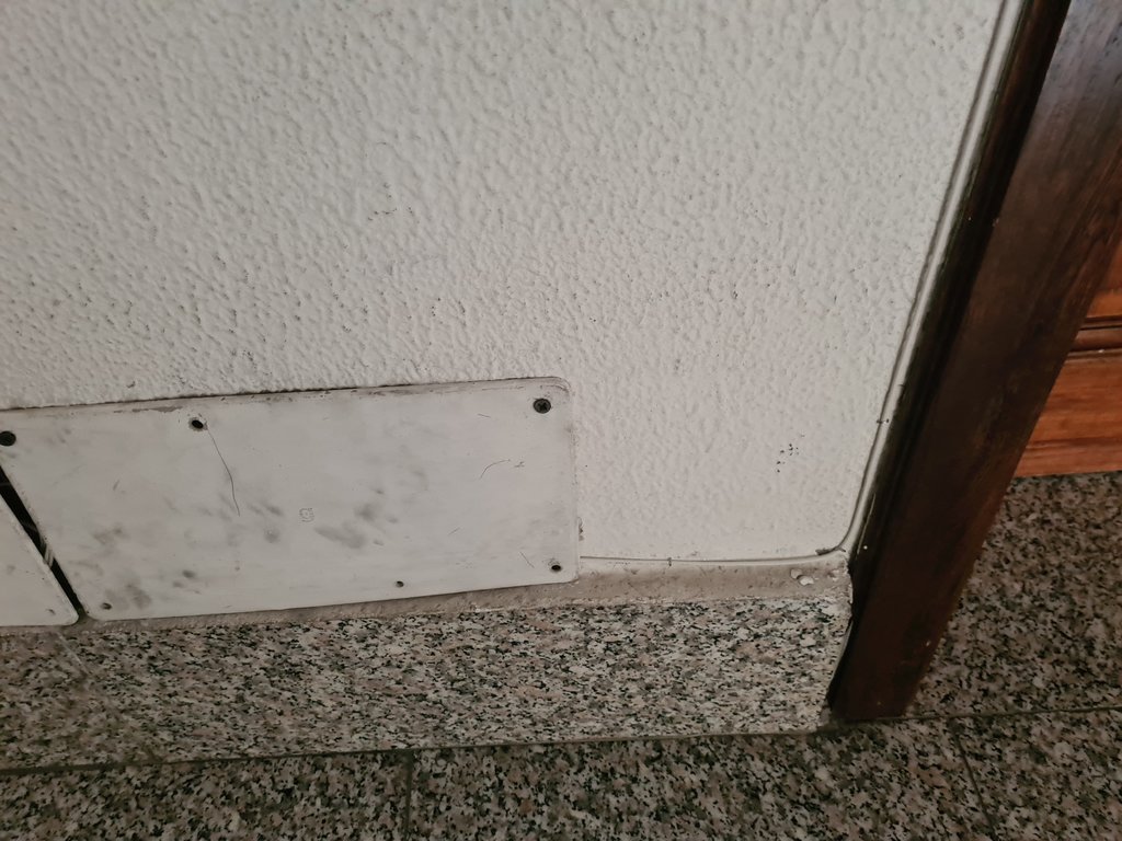 Esco dal lavoro e mi contatta l'amministratrice di condominio: mi chiede se stavo facendo lavori perché ci sono fili scoperti partenti dalla scalota elettrica condominiale che entrano nella mia abitazione e c'era un problema di sicurezza.. Lì per lì non capisco bene, ma corro a casa con un bruttissimo presentimento. Vi allego le foto con lo scenario che mi sono trovato, in perfetto stile ROM. Filo che esce dalla scatola, fissato con la sparapunti, passa attorno al portone di casa ed entra bucando il muro condominiale e facendo cadere l'intonaco all'interno della casa.