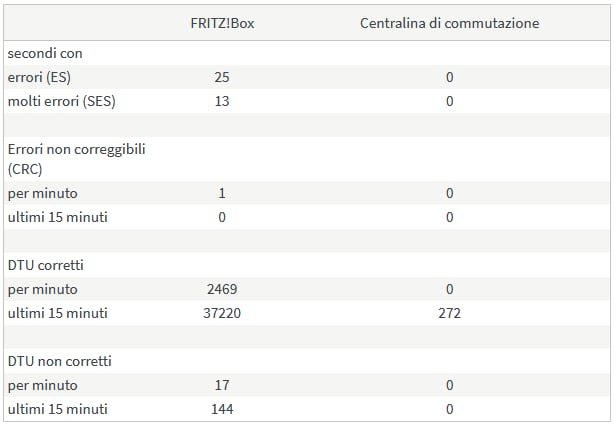 Qui di seguito la lista degli errori (notare che ho già fatto il riavvio del modem e gli errori sono di circa 1h 20m di rilevato :