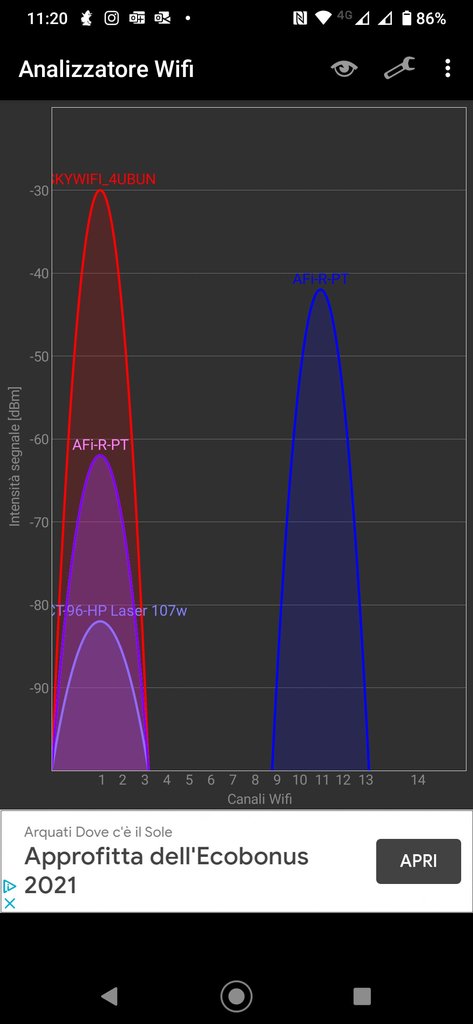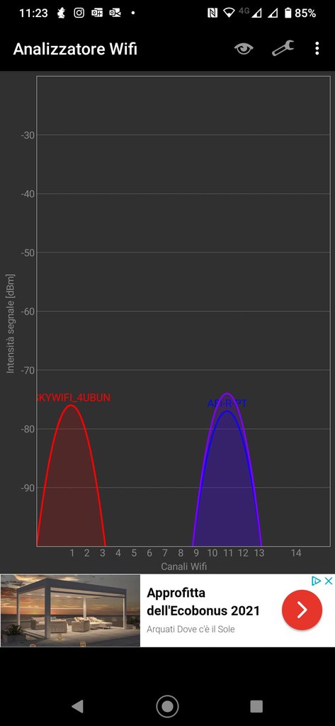 Questa la situazione al primo piano di fianco ai due AP (U6-Lite e Skywifi), l'altro su canale 1 è l'UDM del piano sotto.