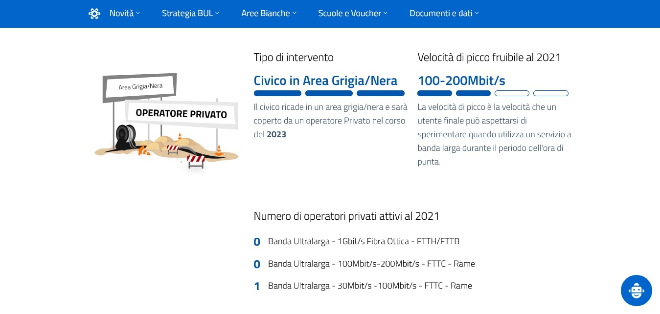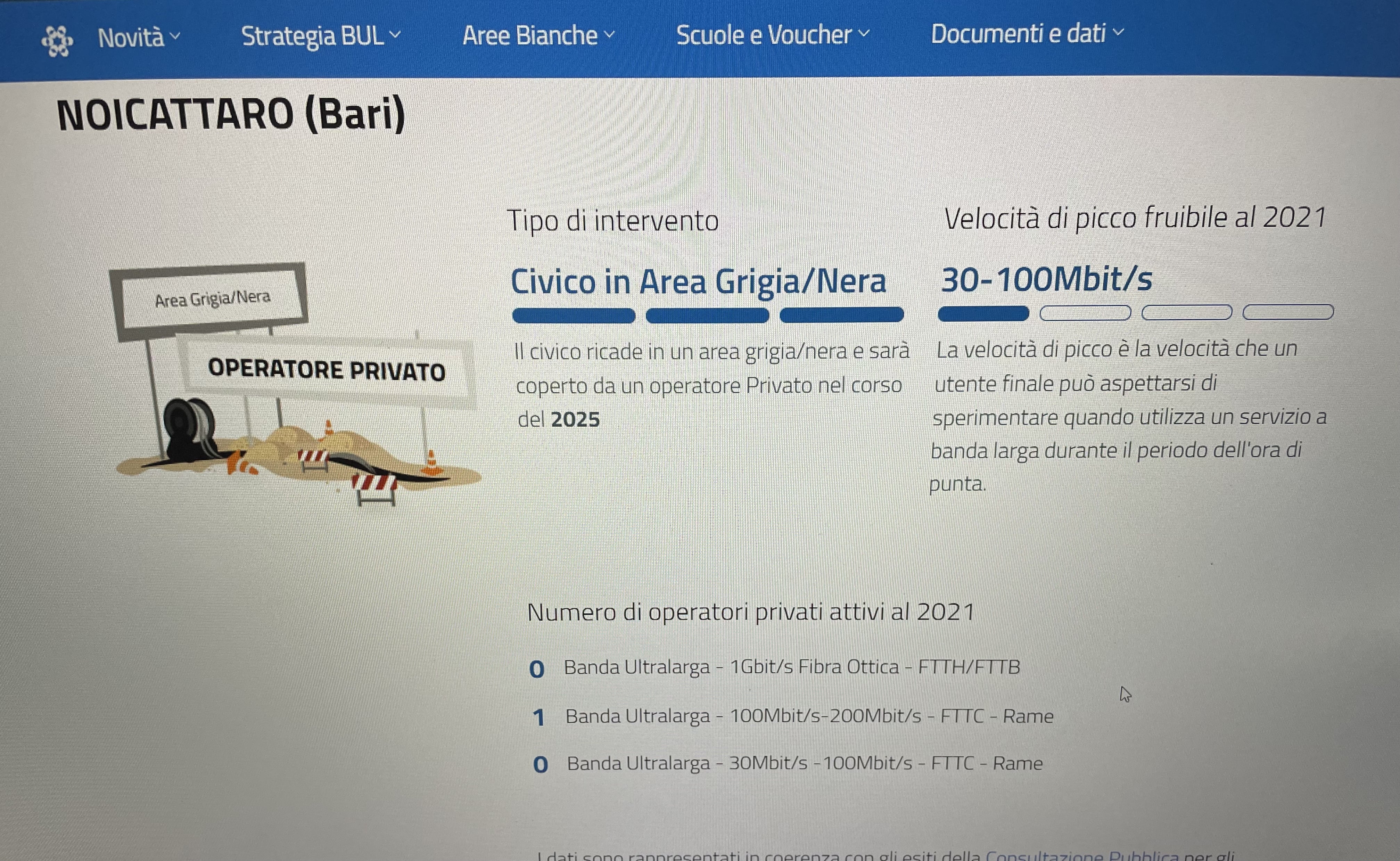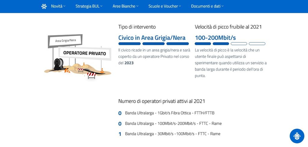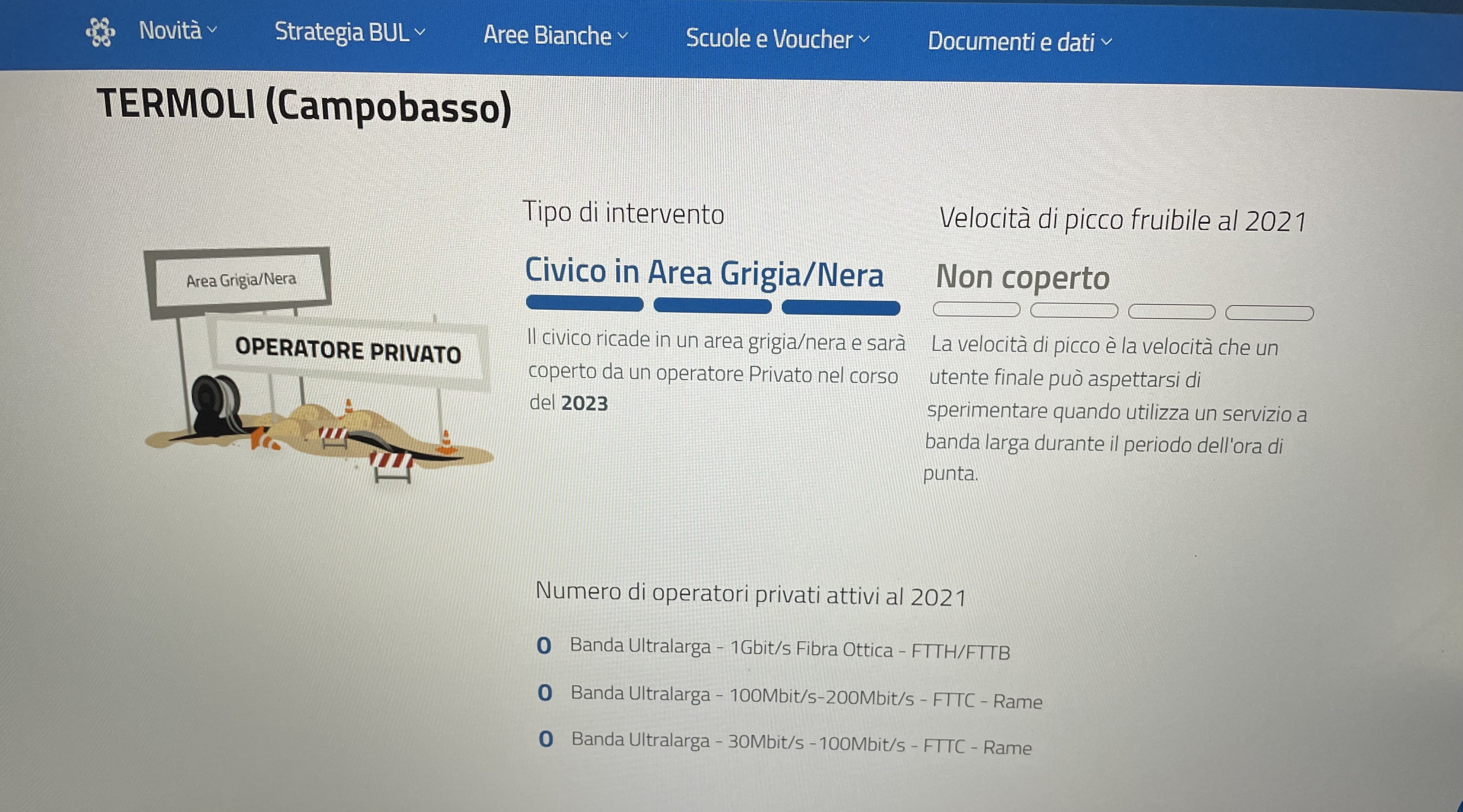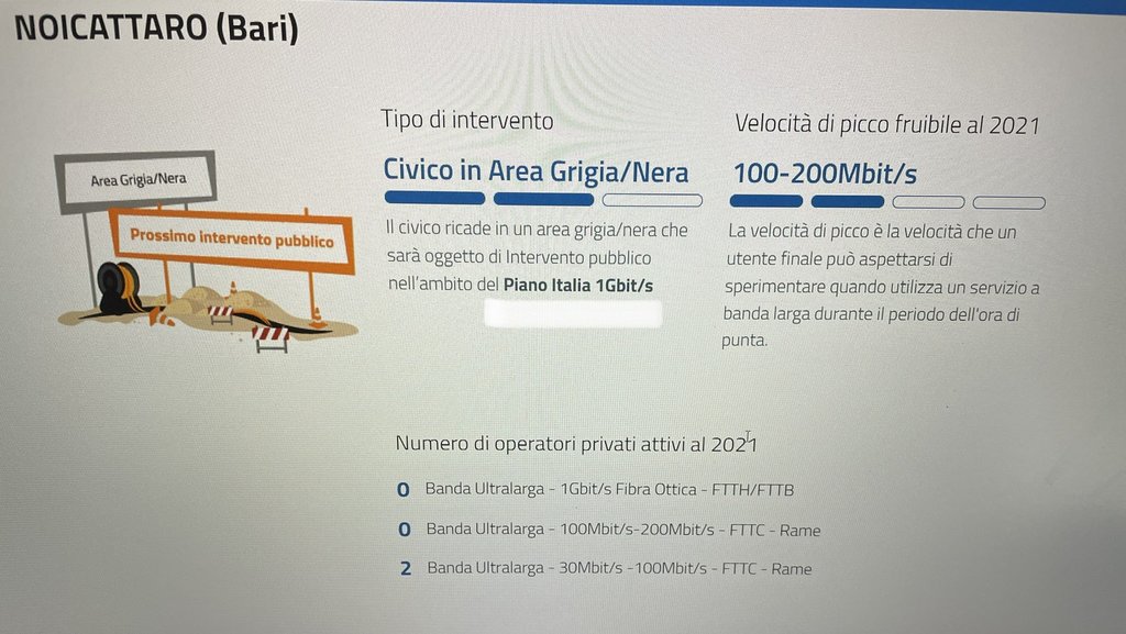 simonebortolin matteocontrini quando si è in area grigia/nera senza intervento pubblico dice "Il civico ricade in un area grigia/nera e sarà coperto da un operatore Privato nel corso del 202x". Coperto da cosa però? Parliamo della soglia dei 300 Mbps immagino, ma uno come dovrebbe capirlo? La cosa più strana è invece quella del piano italia a 1 Gbps