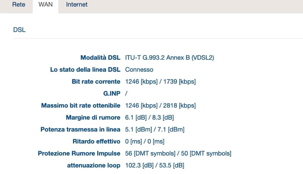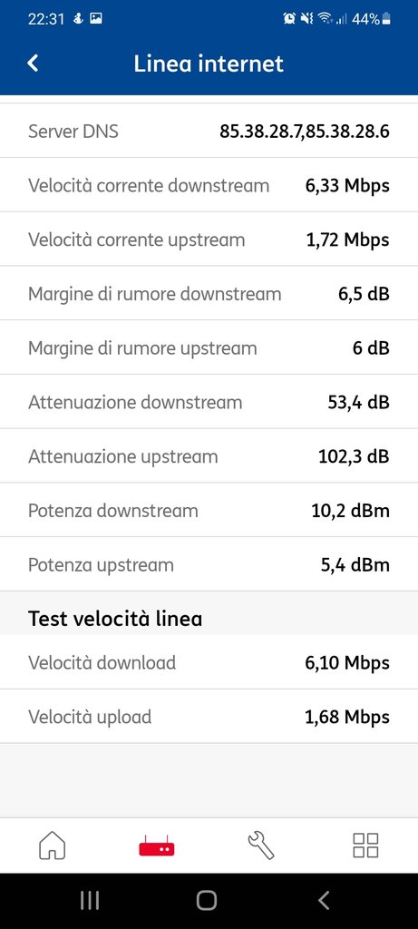 Max velocità raggiunta 6 mbit, minore 2 mbit.